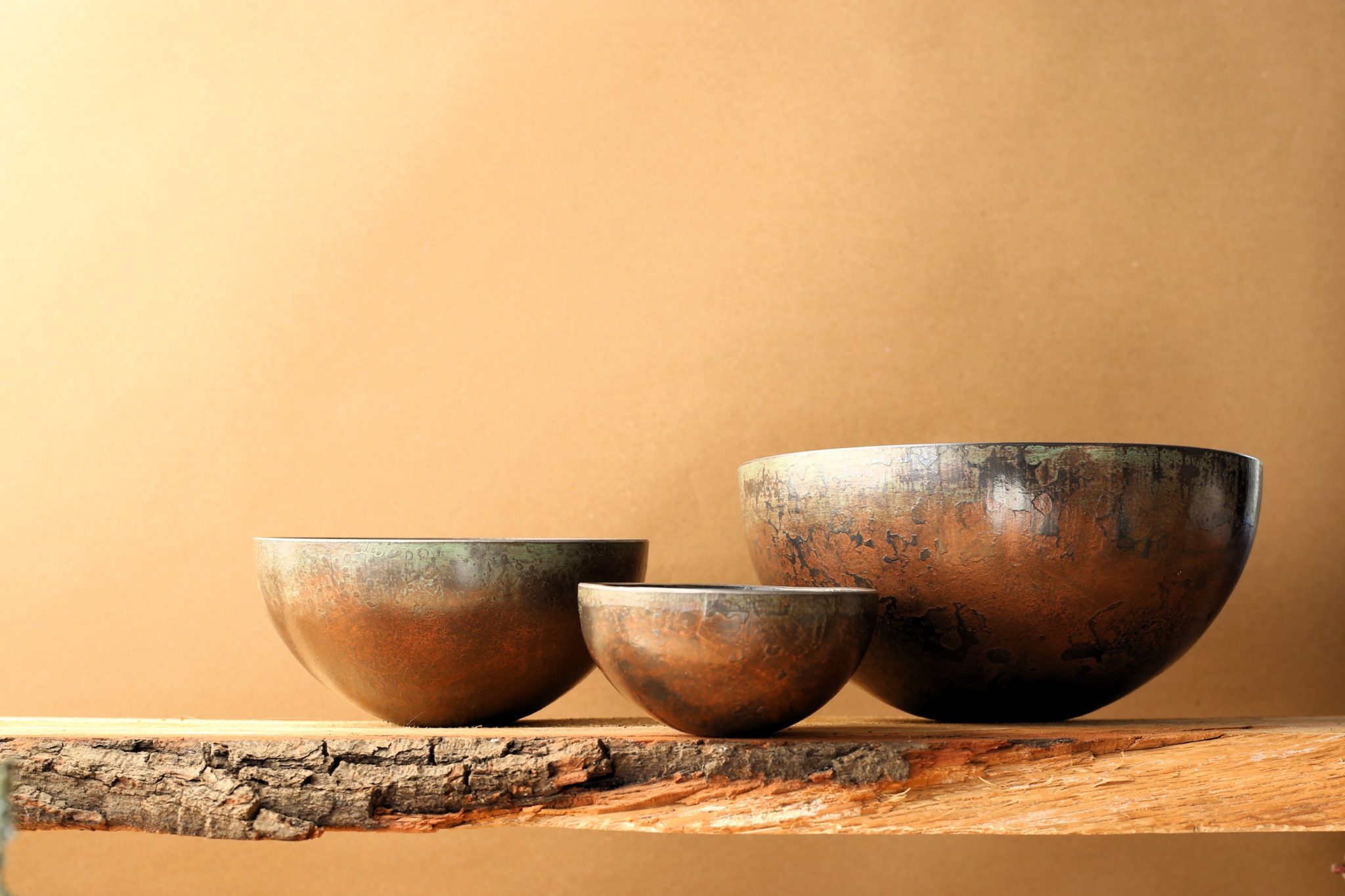 Finally I have to go with the Copper and Green Monk Bowl set – I just love the colours and the shape of them and I love the contrasting button stud at the bottom.”