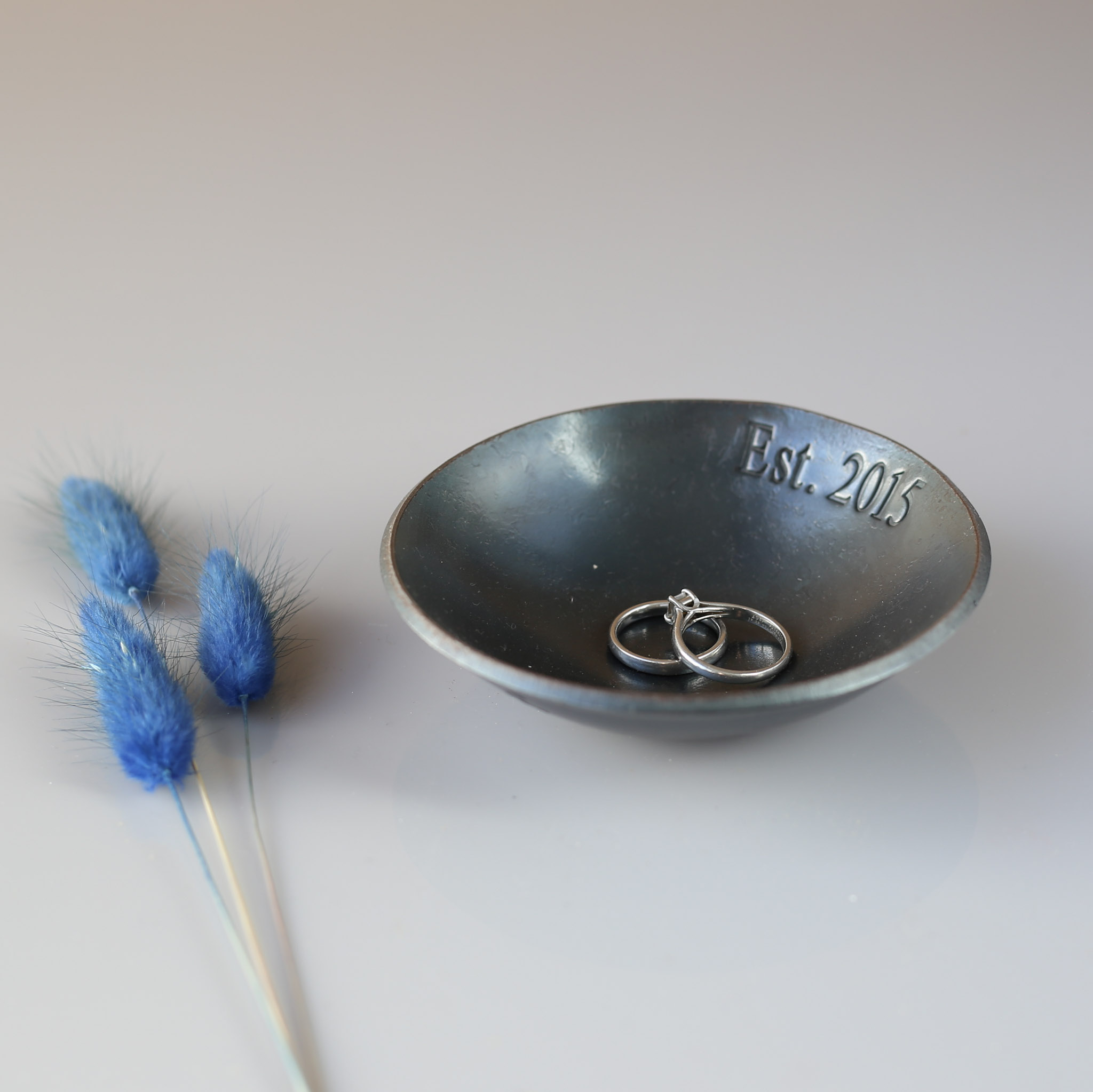 With a flattened bottom for stability, this bowl will sit perfectly and hold rings, earrings, cuff links, ear-buds, and all our everyday treasures.