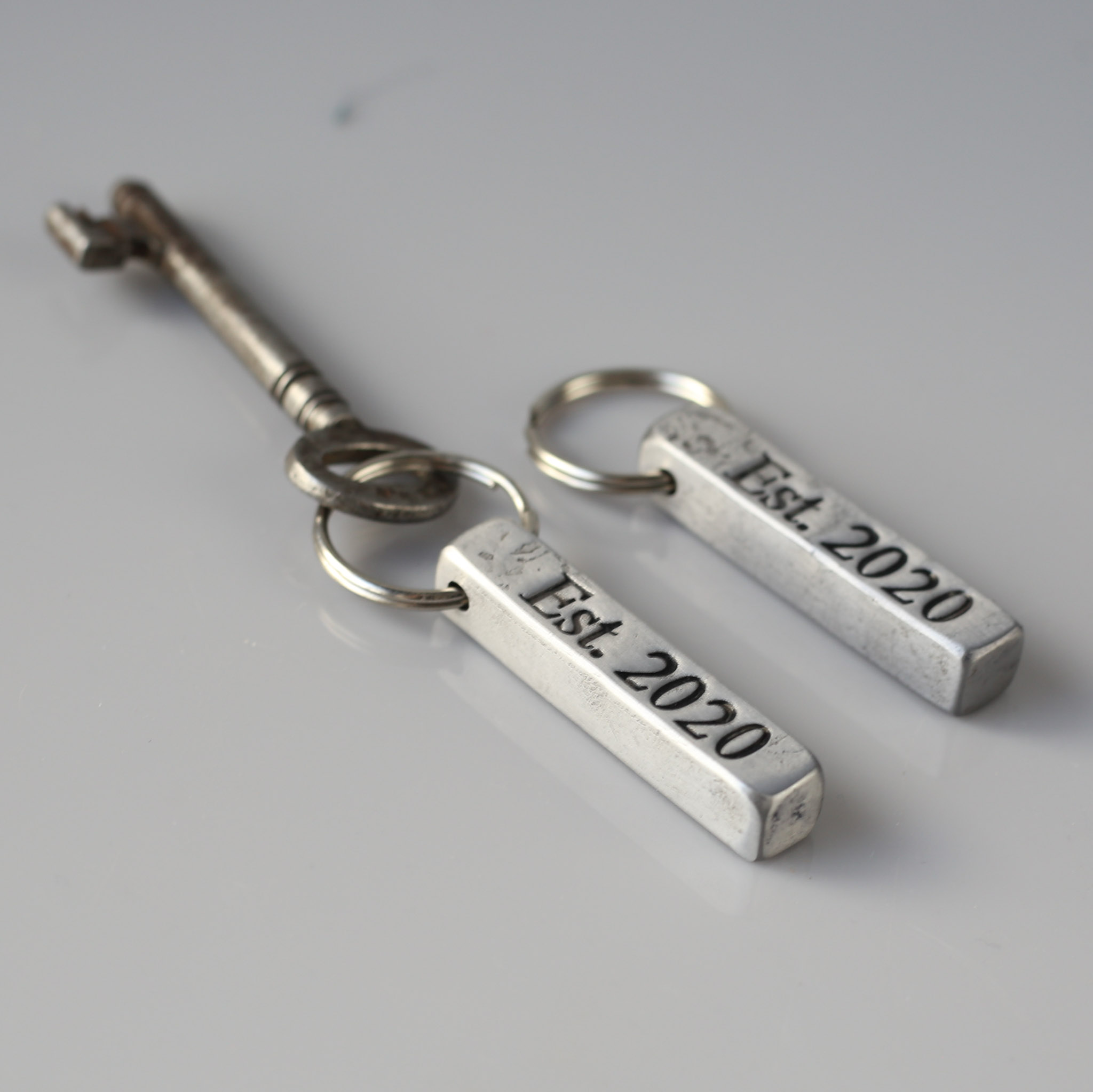 These Handmade Iron Key Chains come in a choice of Style – Polished Square Bar, Raw Square Bar or Dog Tag.