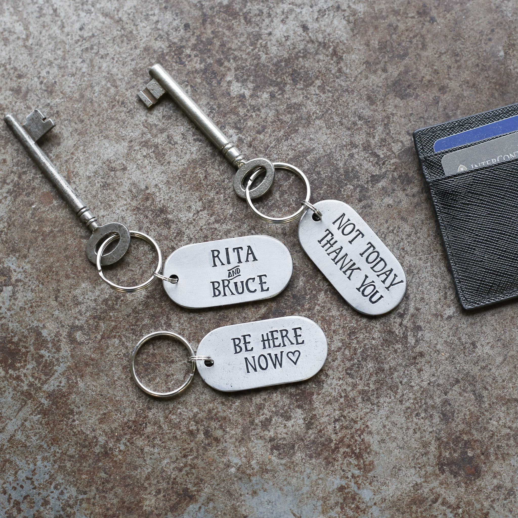 Your Keyring can be personalised to create a totally unique 6th anniversary gift. We will hand stamp your message using individual letter & number punches.