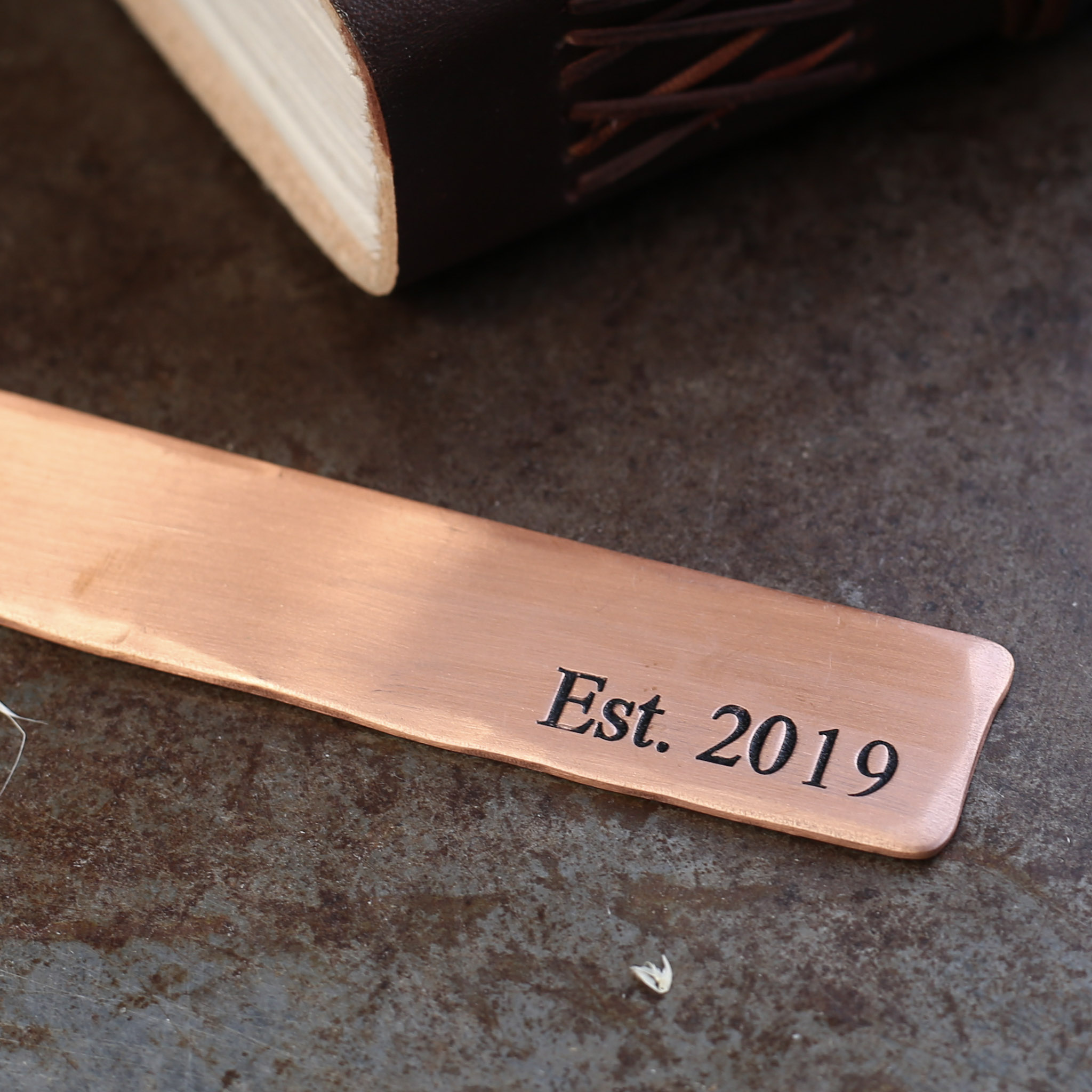 Artisan Hand-Crafted Hammered Copper Bookmark for 7th Wedding Anniversary Gift.