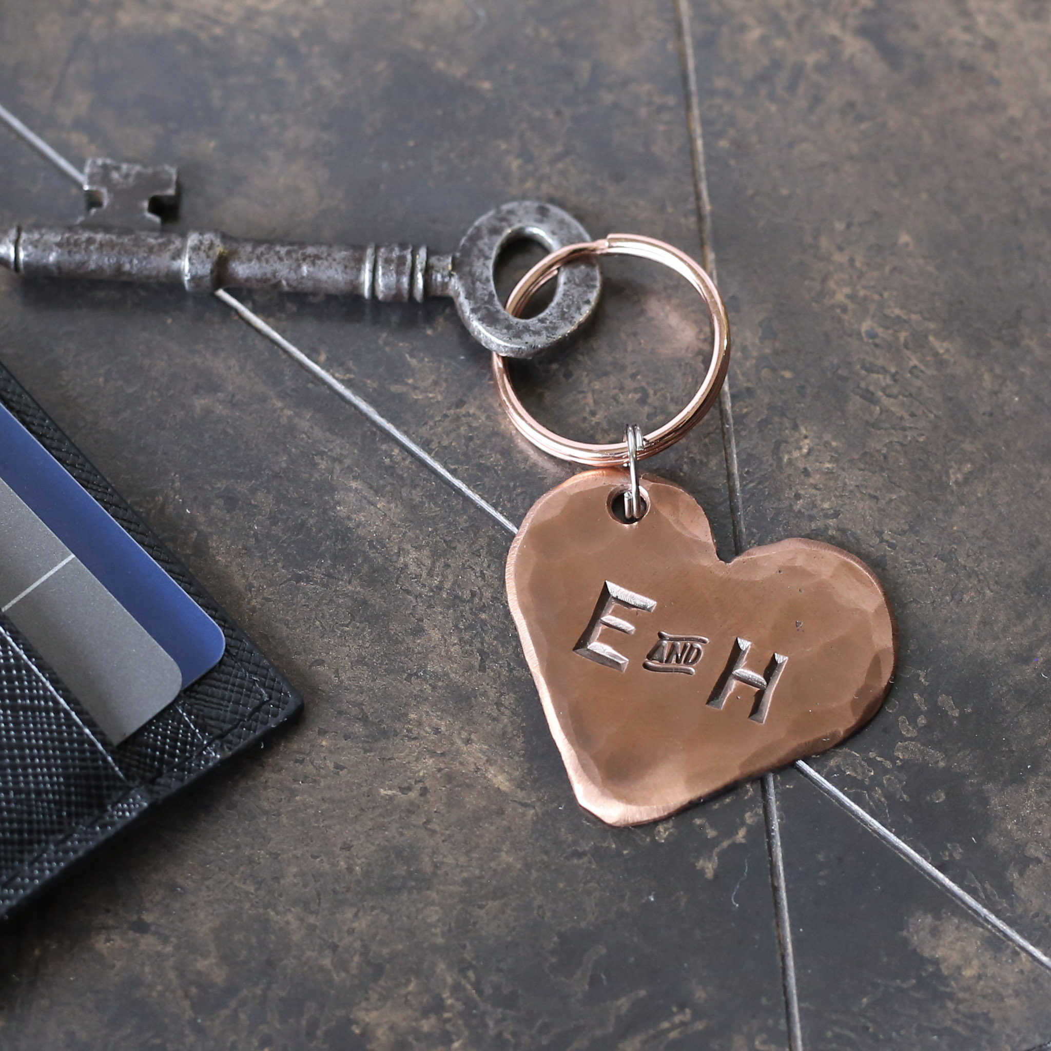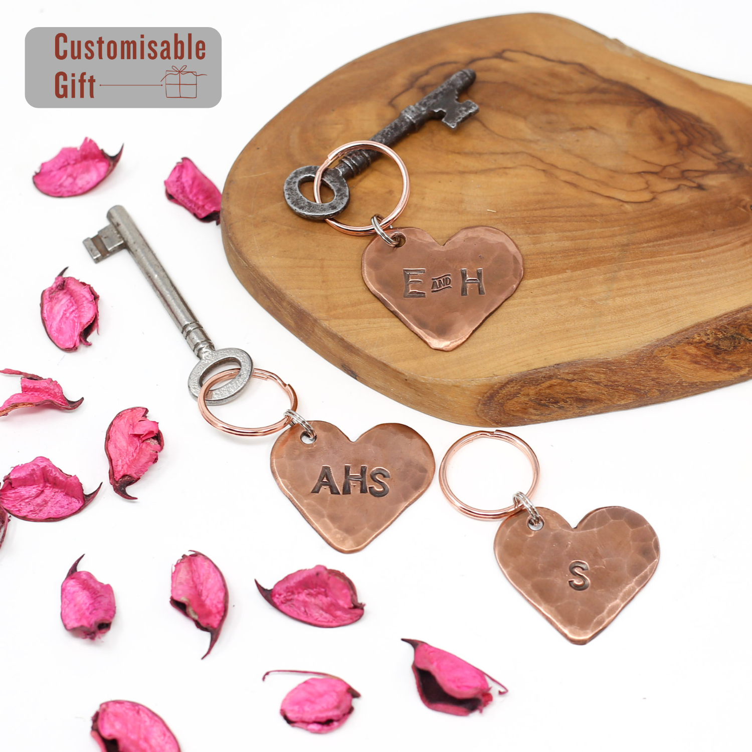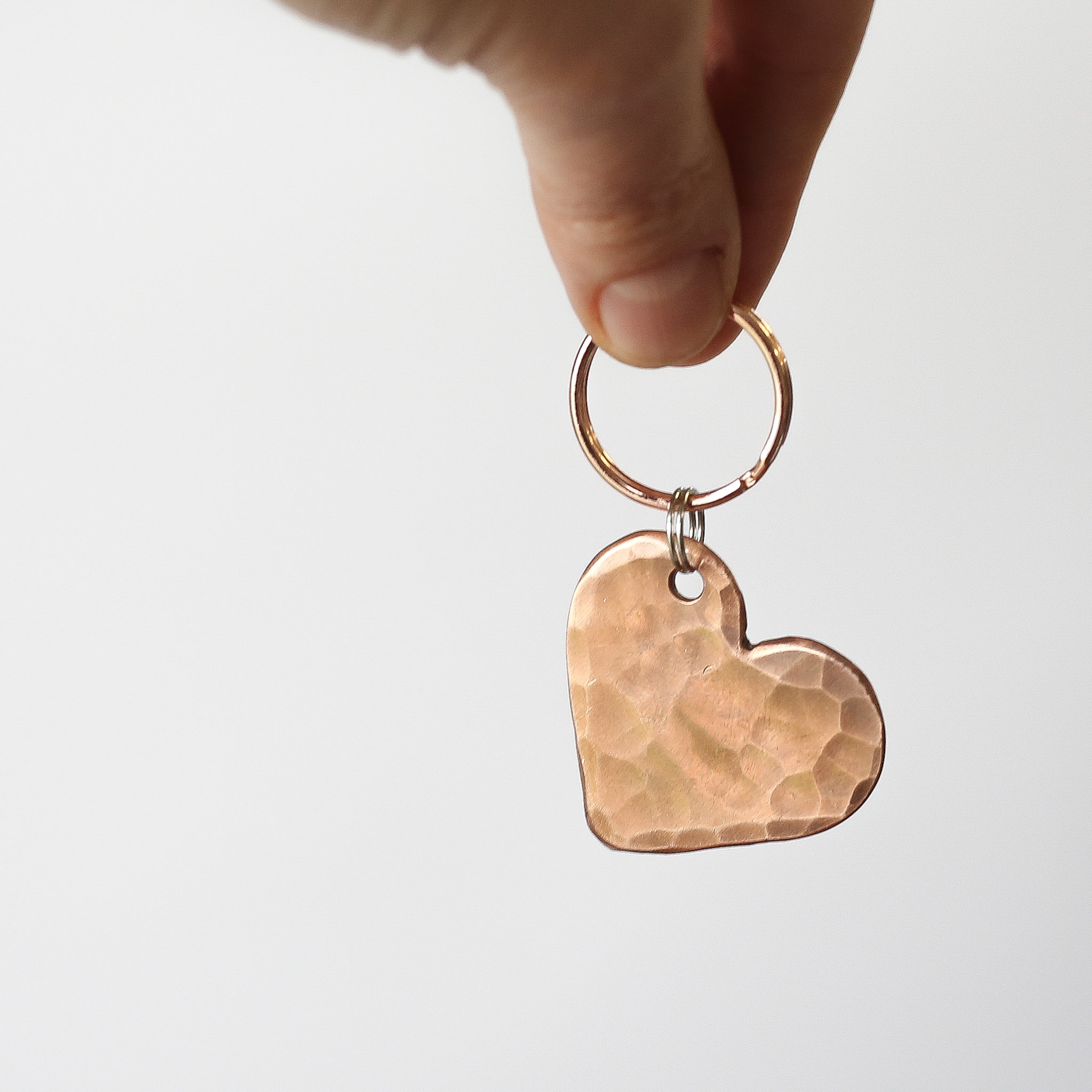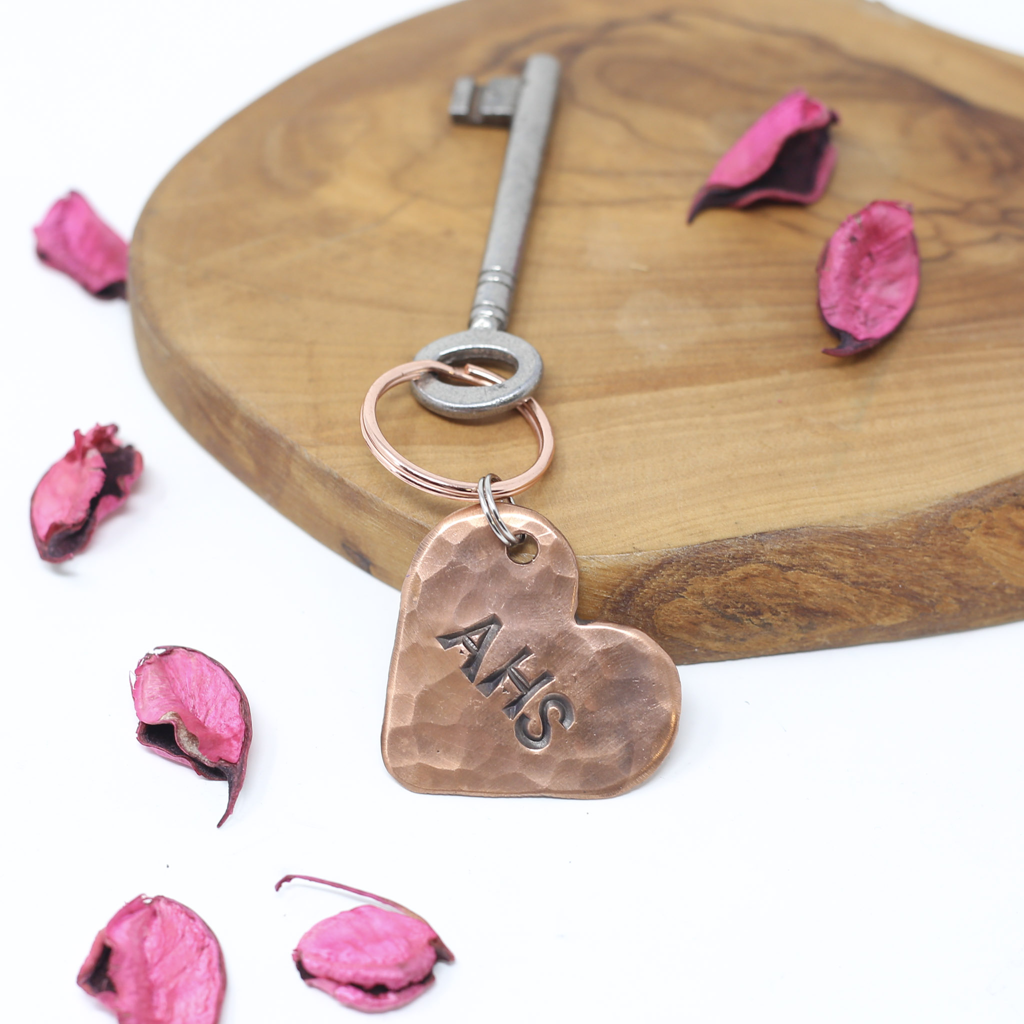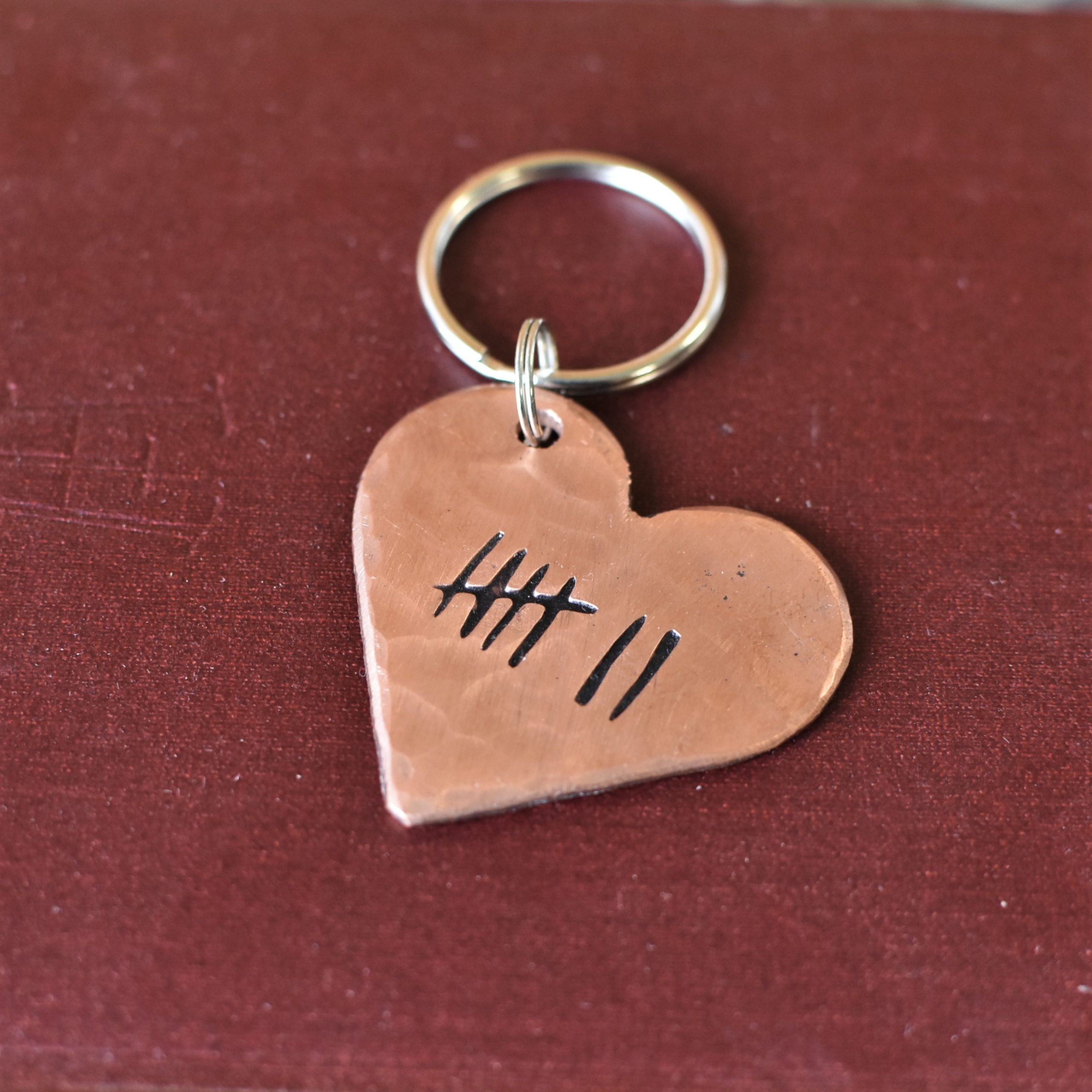 Solid Copper Heart Keychain with choice of designs; 7 Tally marks, Roman numerals for 7, Plain or why not personalise with initials?