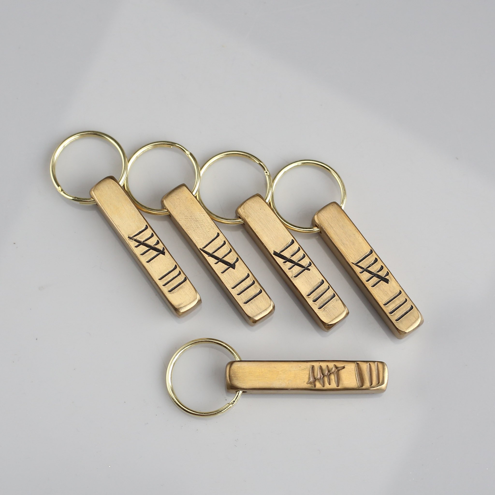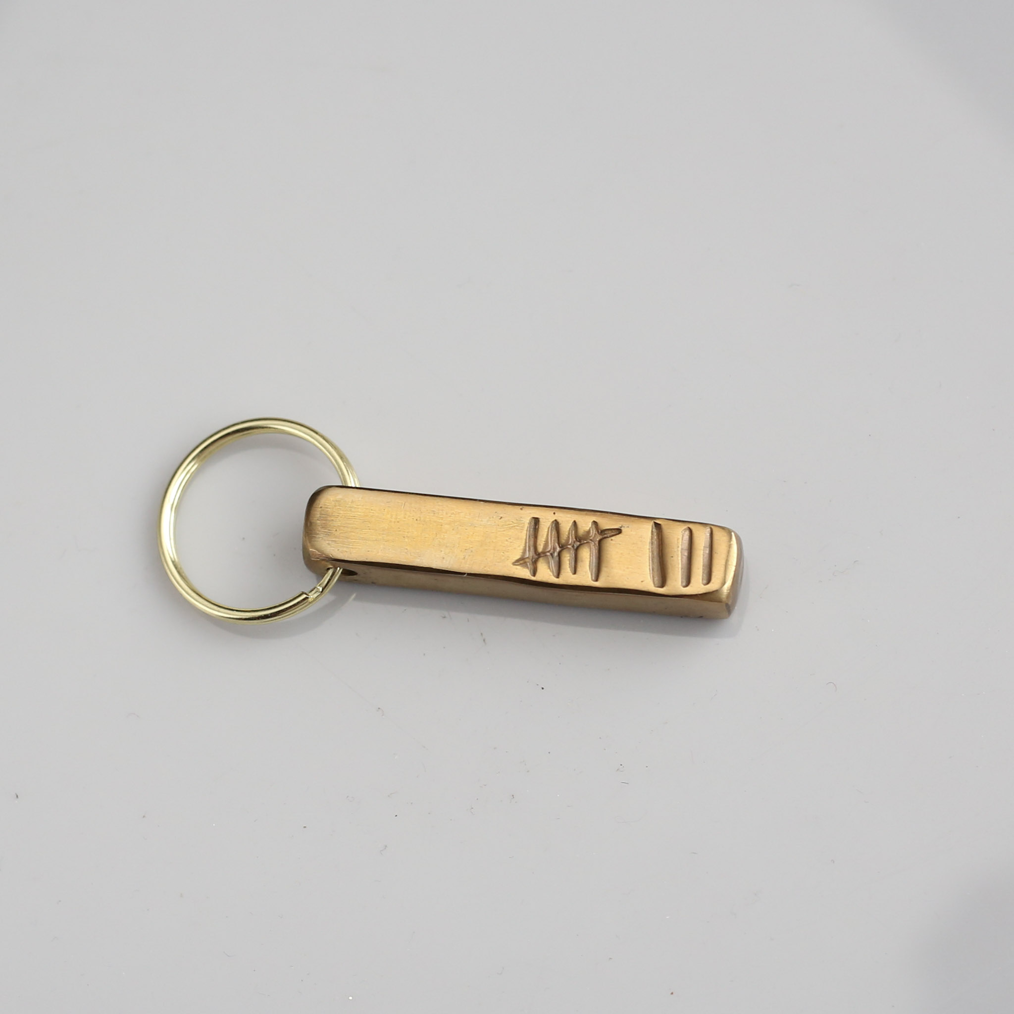 Hand-stamped with 8 tally marks. A notch for every year of your journey so far.