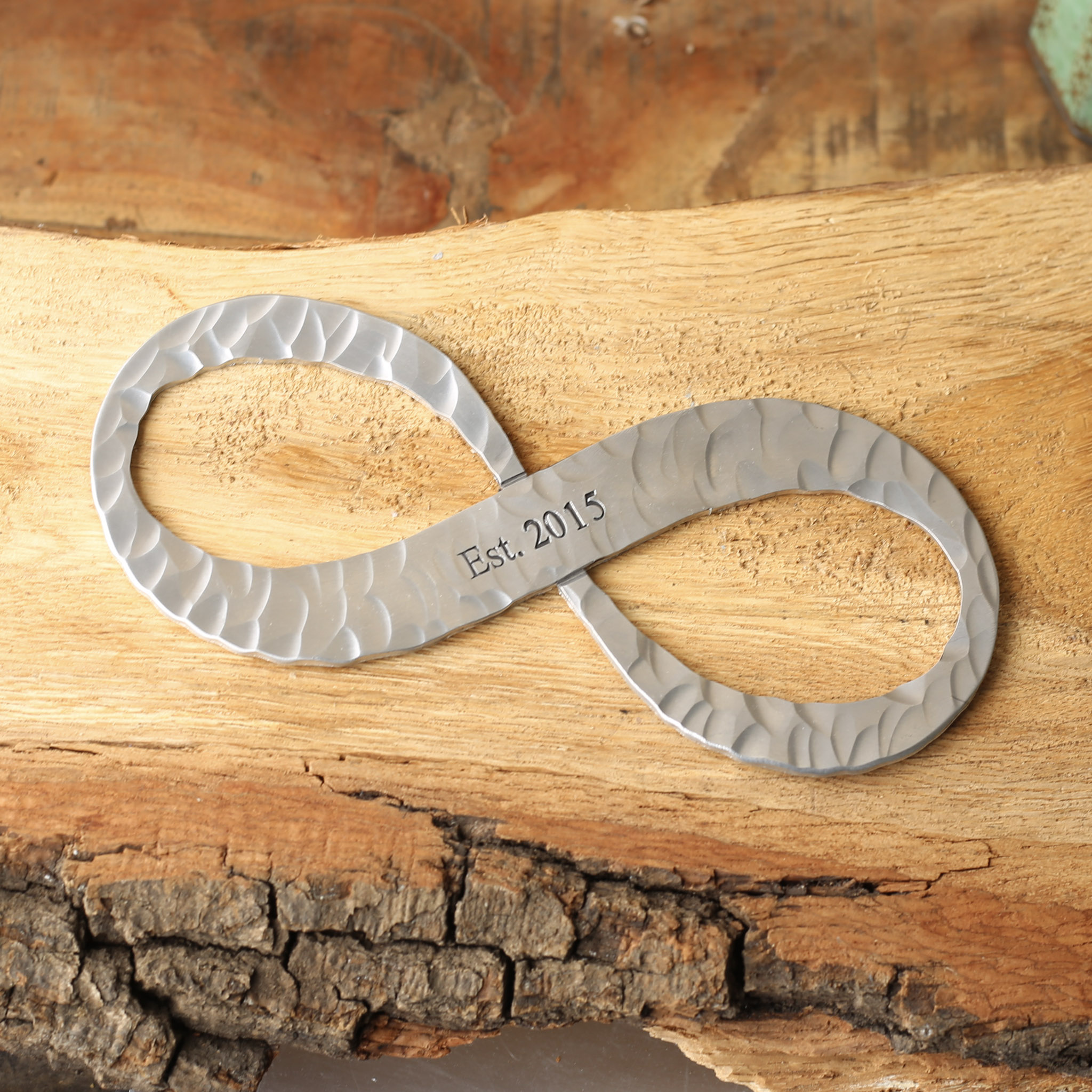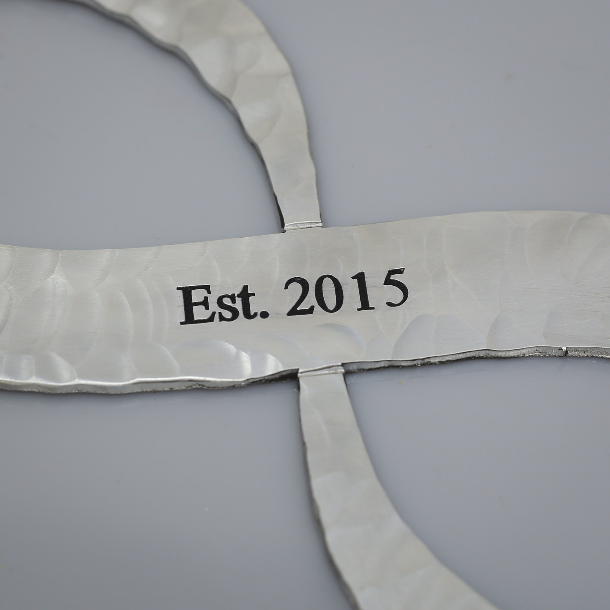 Aluminium Infinity Knot Symbol Est 2016, 10th Anniversary Gift