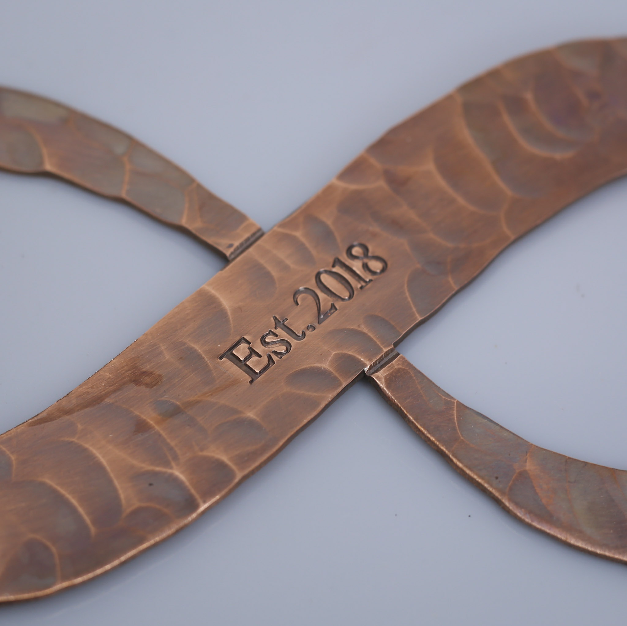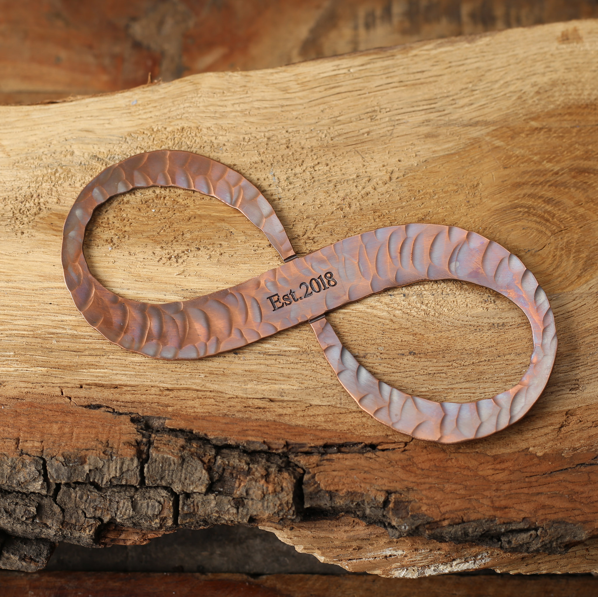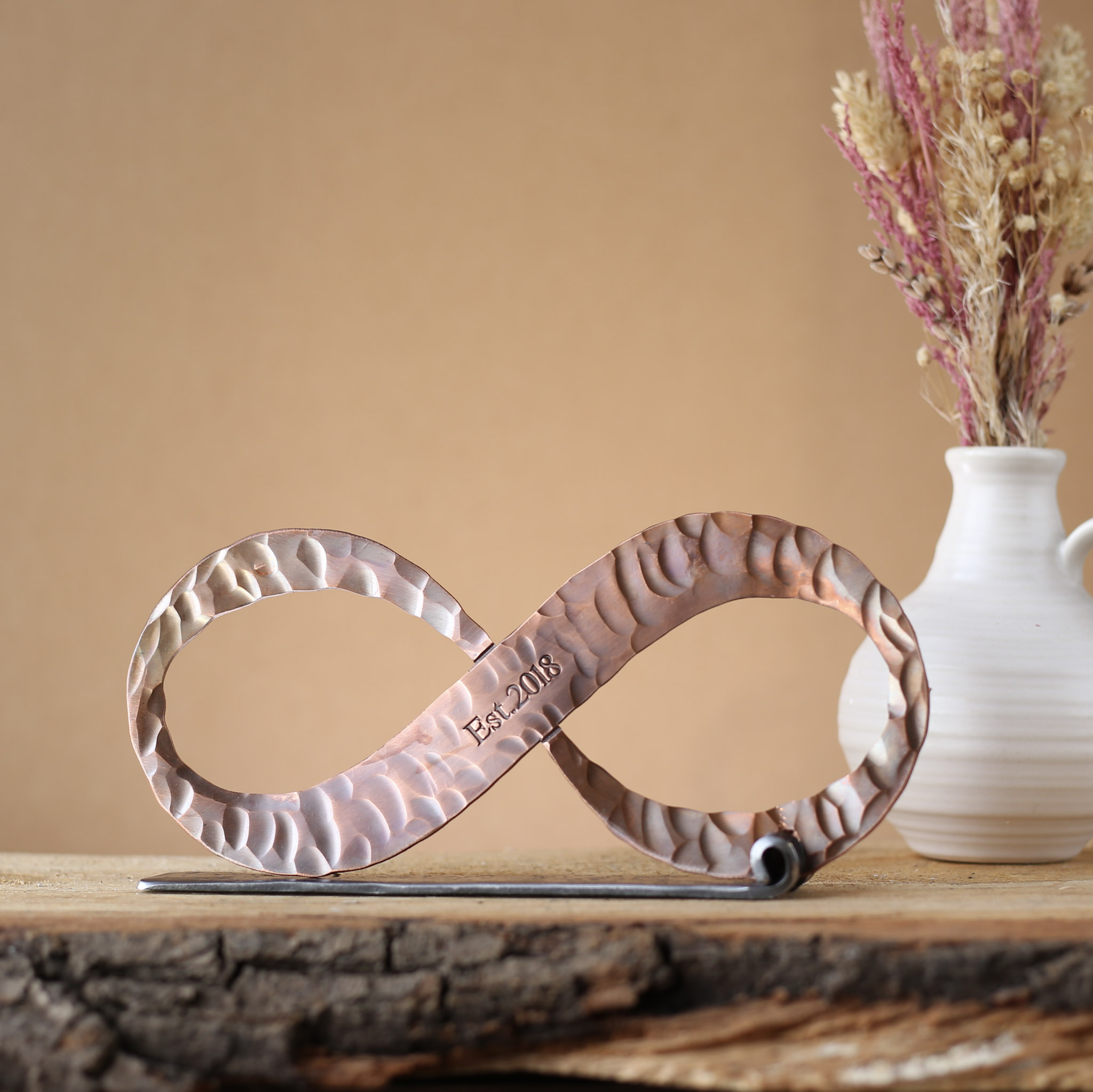 Commemorate seven wonderful years together with our beautifully crafted copper infinity knot sculpture, a contemporary interpretation of the traditional 7th-anniversary material. Symbolising strength, unity, and an everlasting bond, this piece combines tradition with modern design.