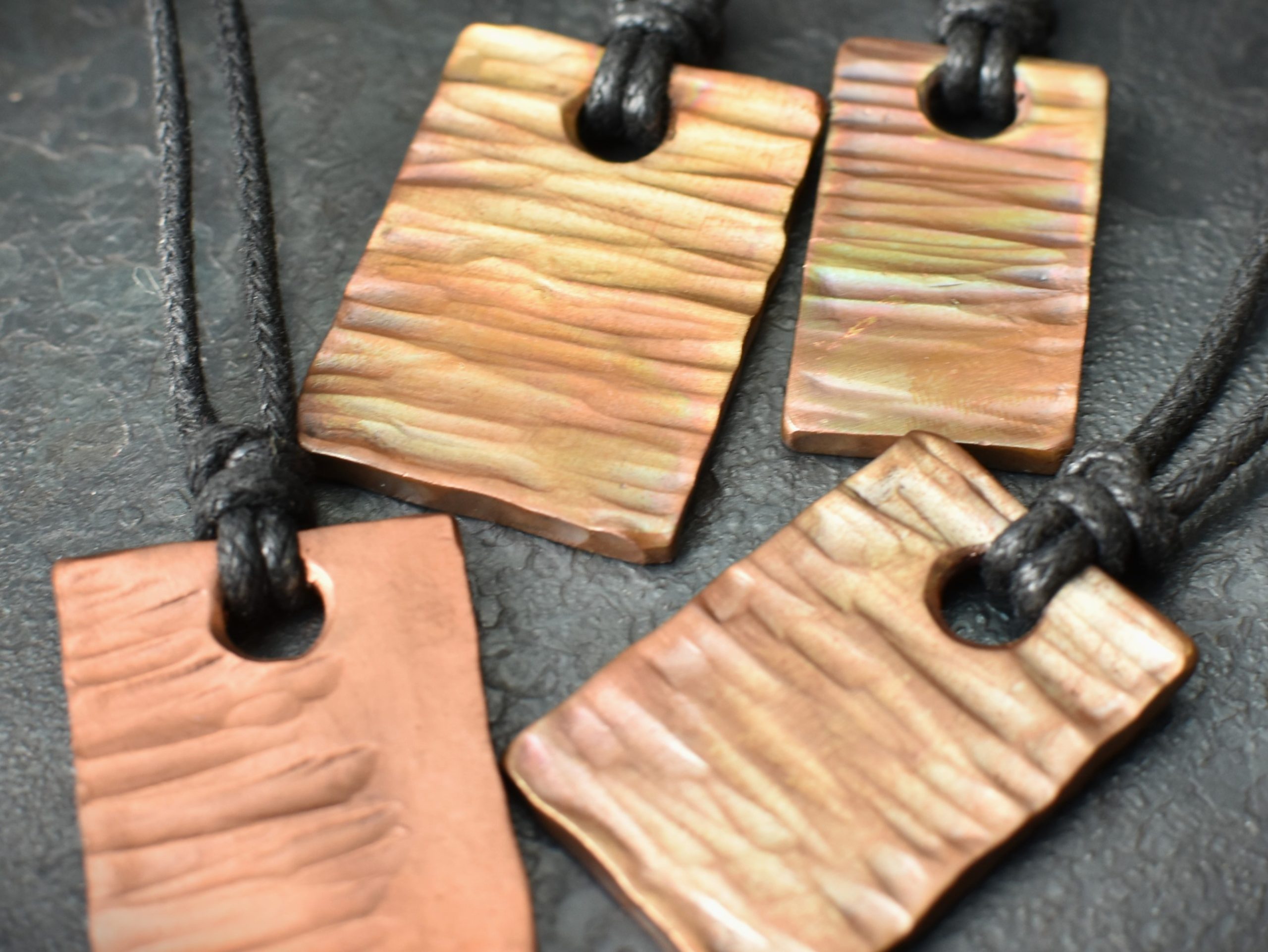 Each pendant is heat-treated to achieve a vibrant, colored luster on its surface, with shades ranging from blue and purple to pink and yellow. Because each piece is unique, the pendant you receive may differ slightly from the image, it will match the design you select.
