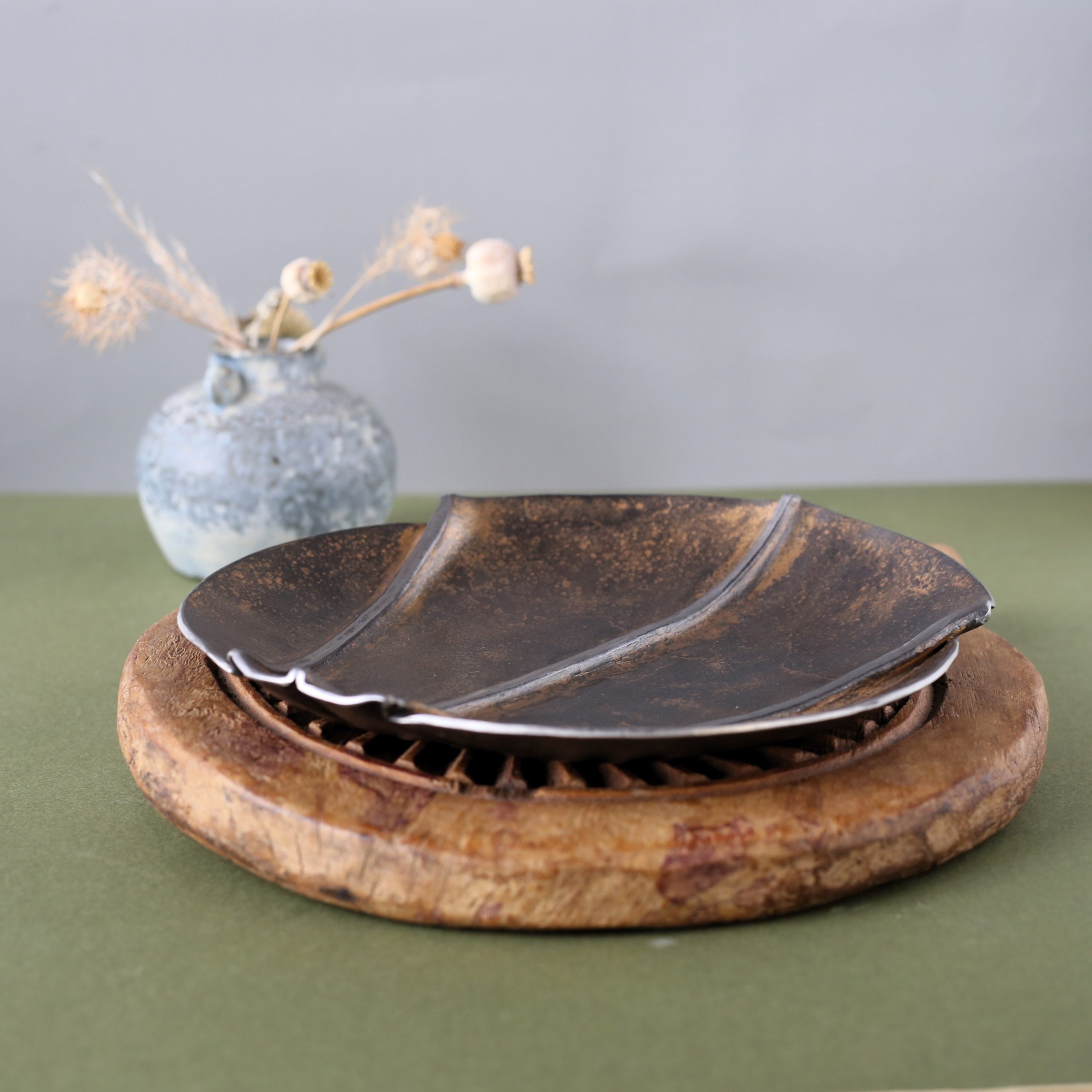 SKU: LEA025 Categories: 11th Anniversary Gifts, Dishes, Limited Editions Artisan, All Products Tags: corset, dish, fold, fold bowl, hand made, handcrafted, iron, shell shape, unique, wedding anniversary gift, wedding gift
