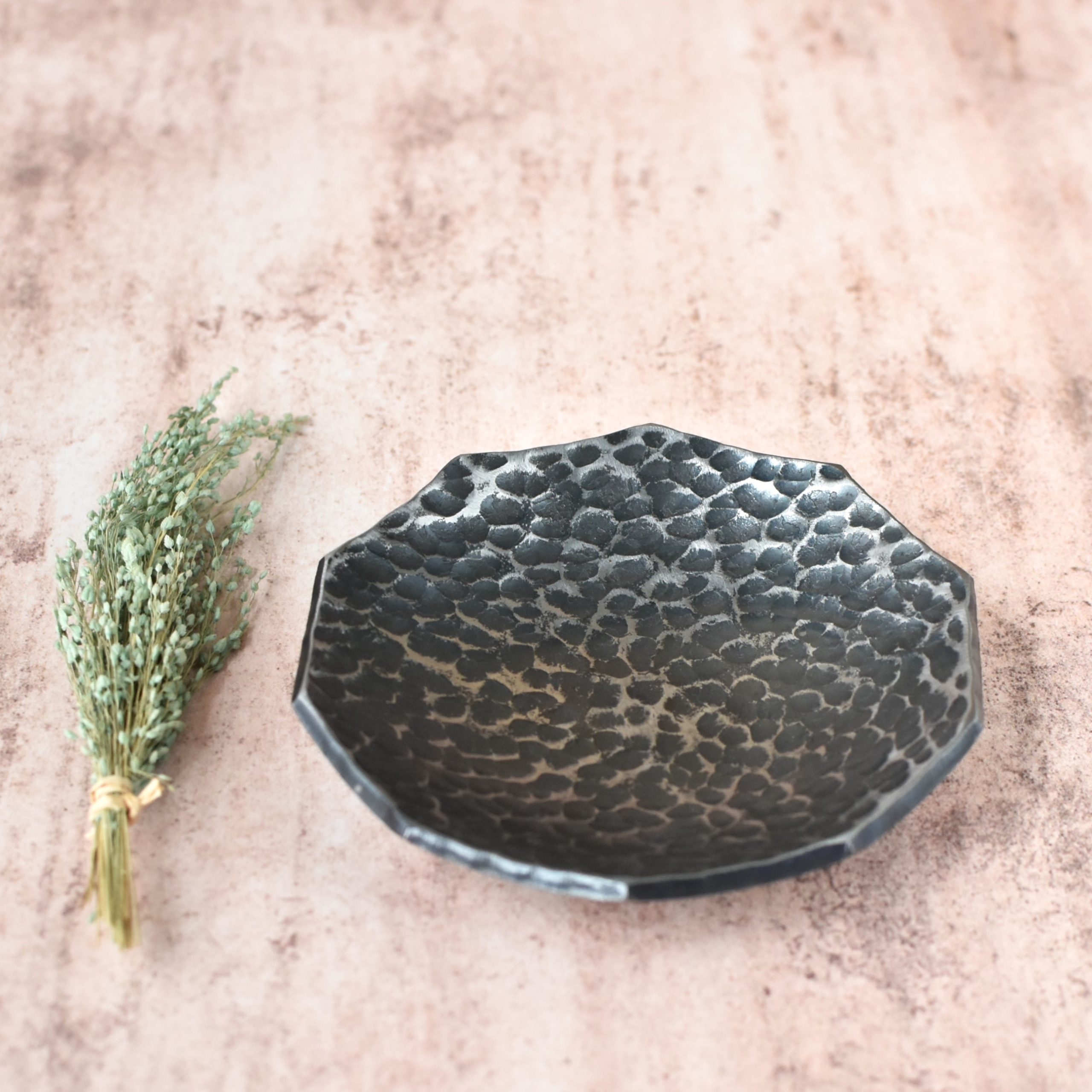 Modern Forged Iron Dish with 10 Sides; Decagon Shape Ring Dish.