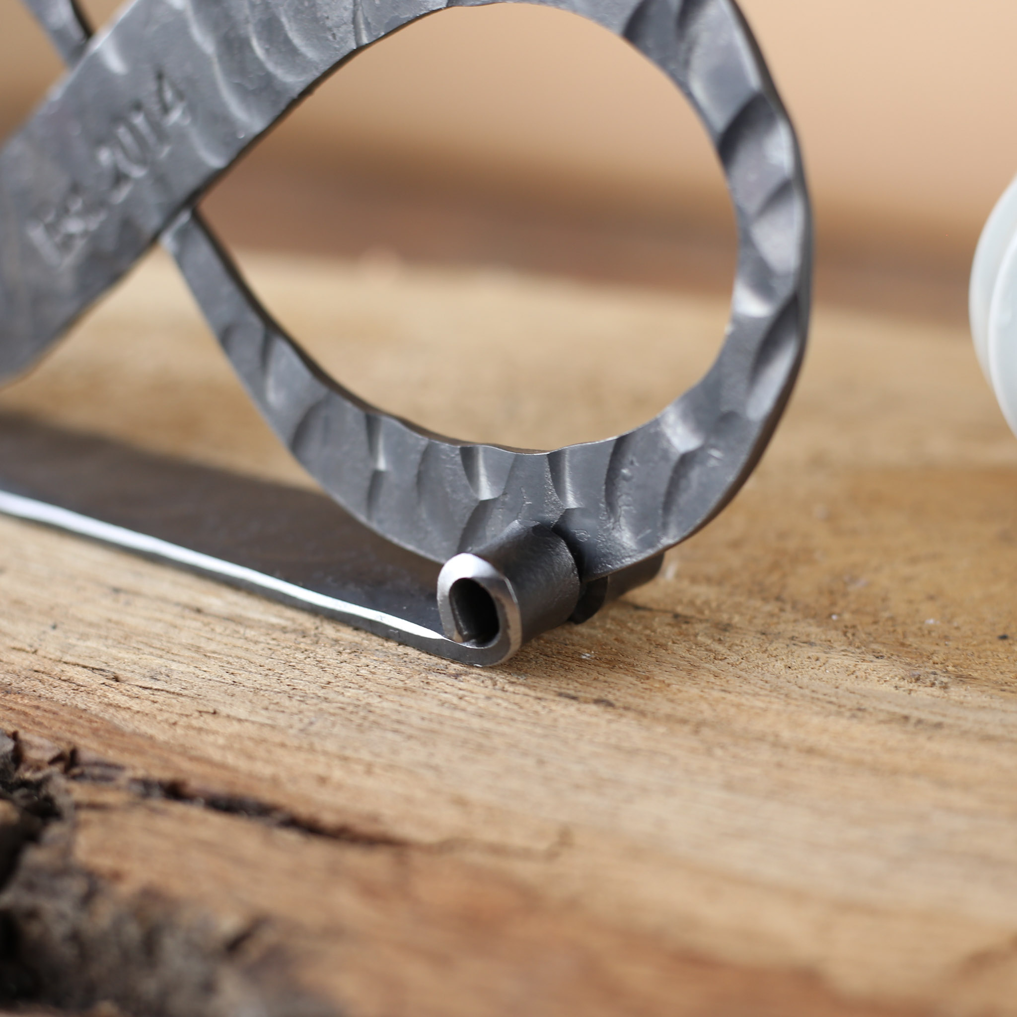 Hand forged from metal. We make this sculpture in our country workshop using fire, anvil and hammers, this powerful shape symbolises infinite unity. Designed by us then cut out using our in-house plasma cutter and then shaped with traditional blacksmith methods. Brushed and polished for a tactile finish.