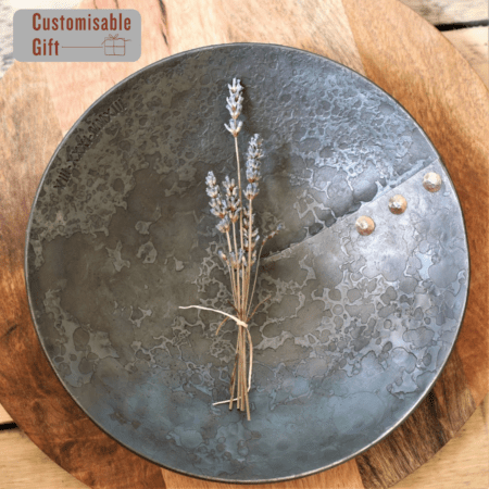 Hand forged from Iron. Keep dry and away from damp. We polish the iron with layers of protective wax, however we advise to avoid excessive moisture.