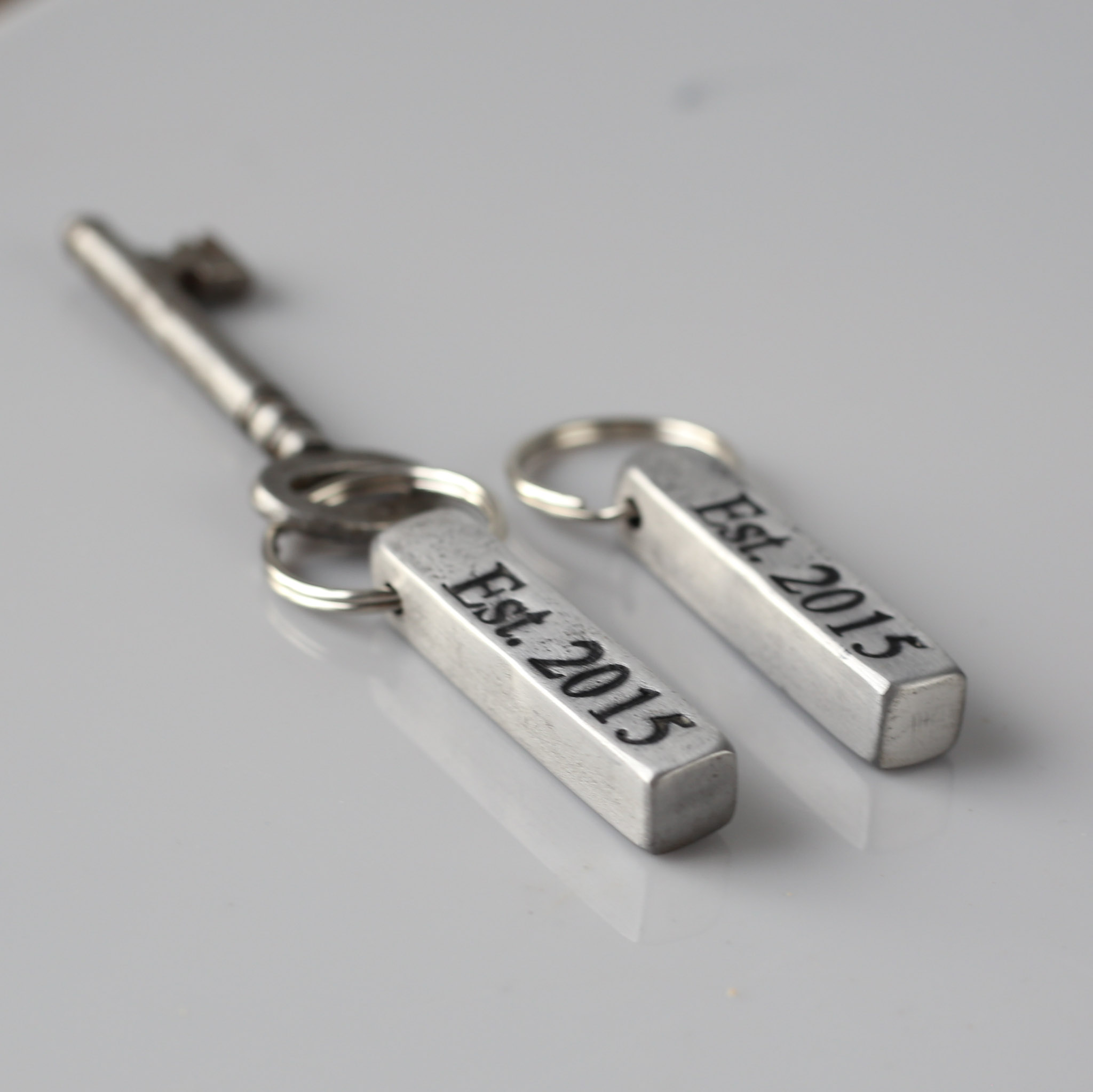 These personalised square bar steel keyrings make a great affordable gift for young and old and everyone in-between. They are suitable for 11th wedding anniversary gifts.