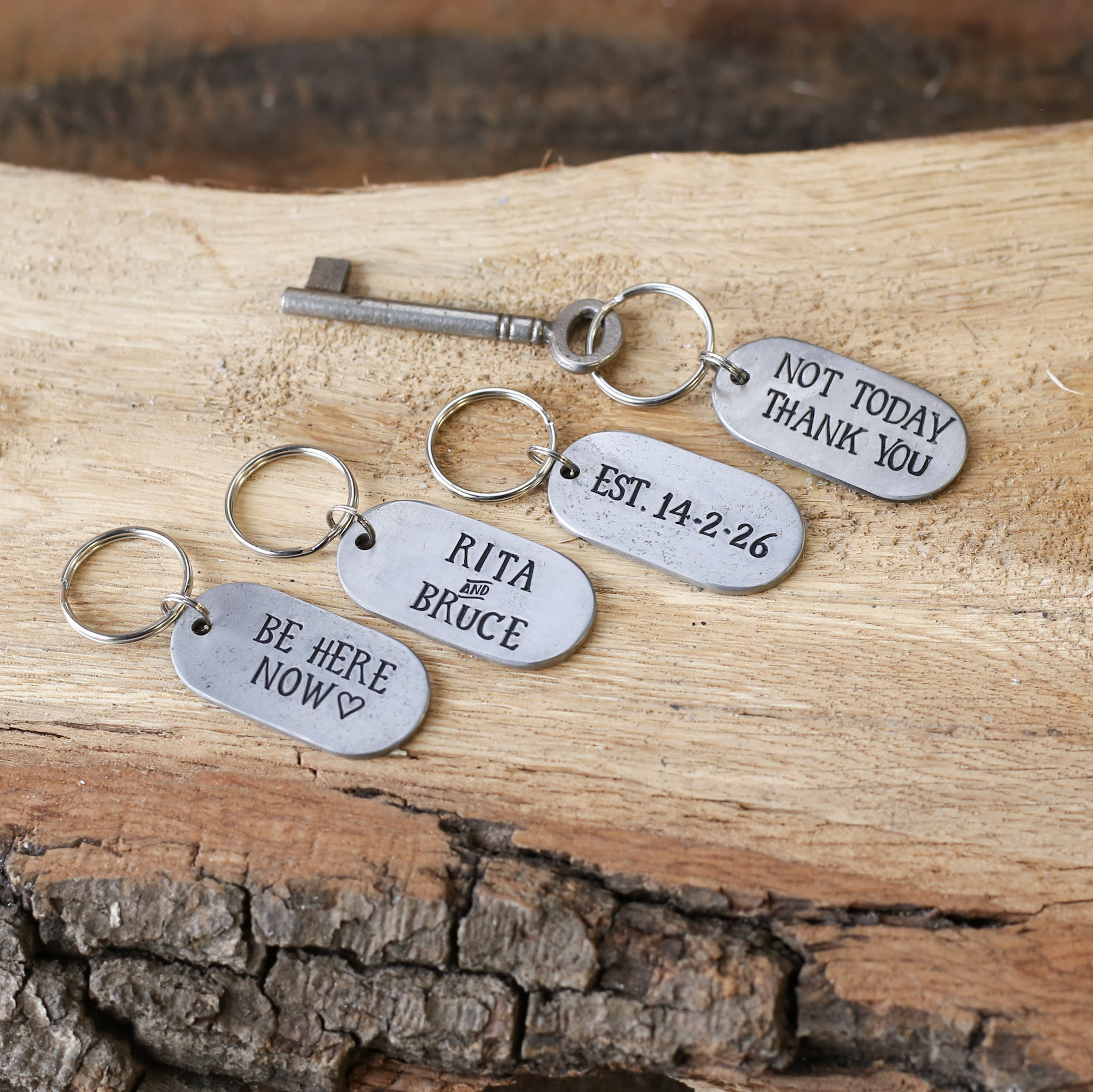 Your Keyring can be personalised to create a totally unique 11th anniversary gift. We will hand stamp your message using individual letter & number punches.