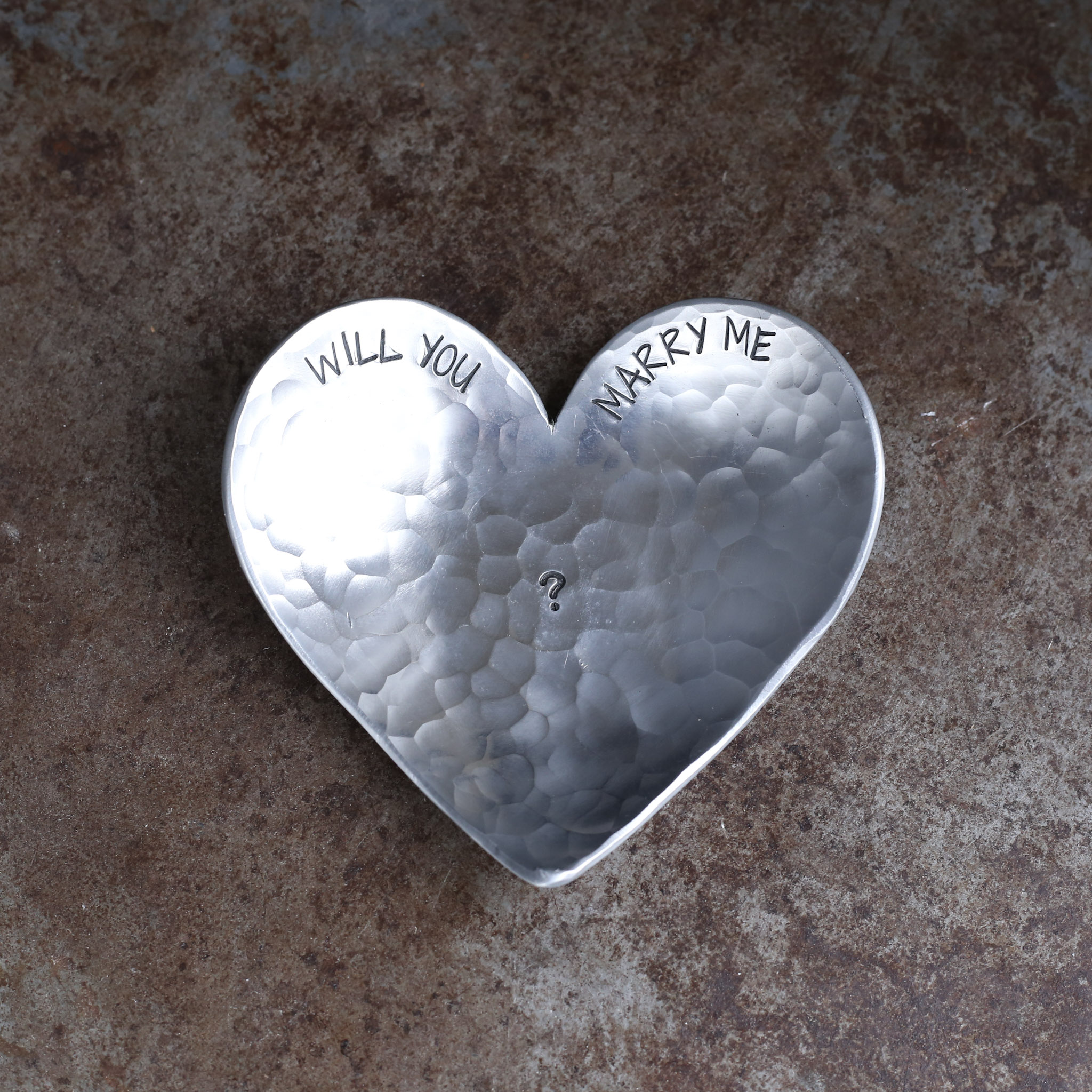 Beautiful Aluminium Heart Dish hand stamped with the most important question you will ever ask …….