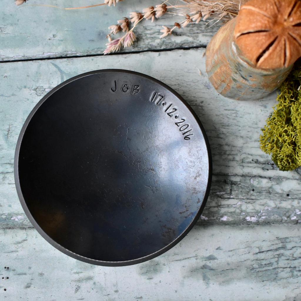 Your small dish can be personalised to create a totally unique gift. We will hand stamp your message using individual letter & number punches.